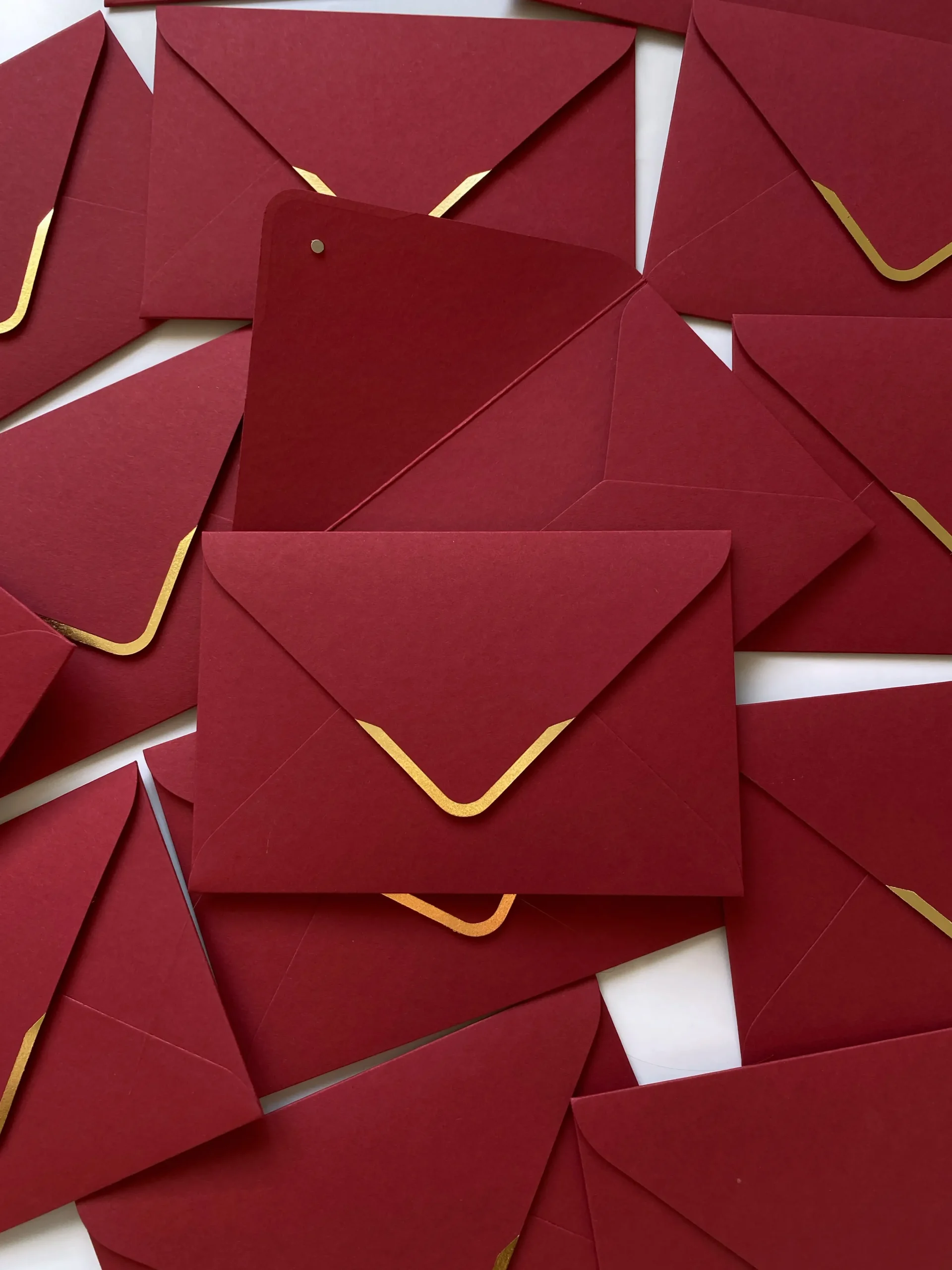 Тиснення золотою фольгою у вигляді трикутника, на носику конверта.