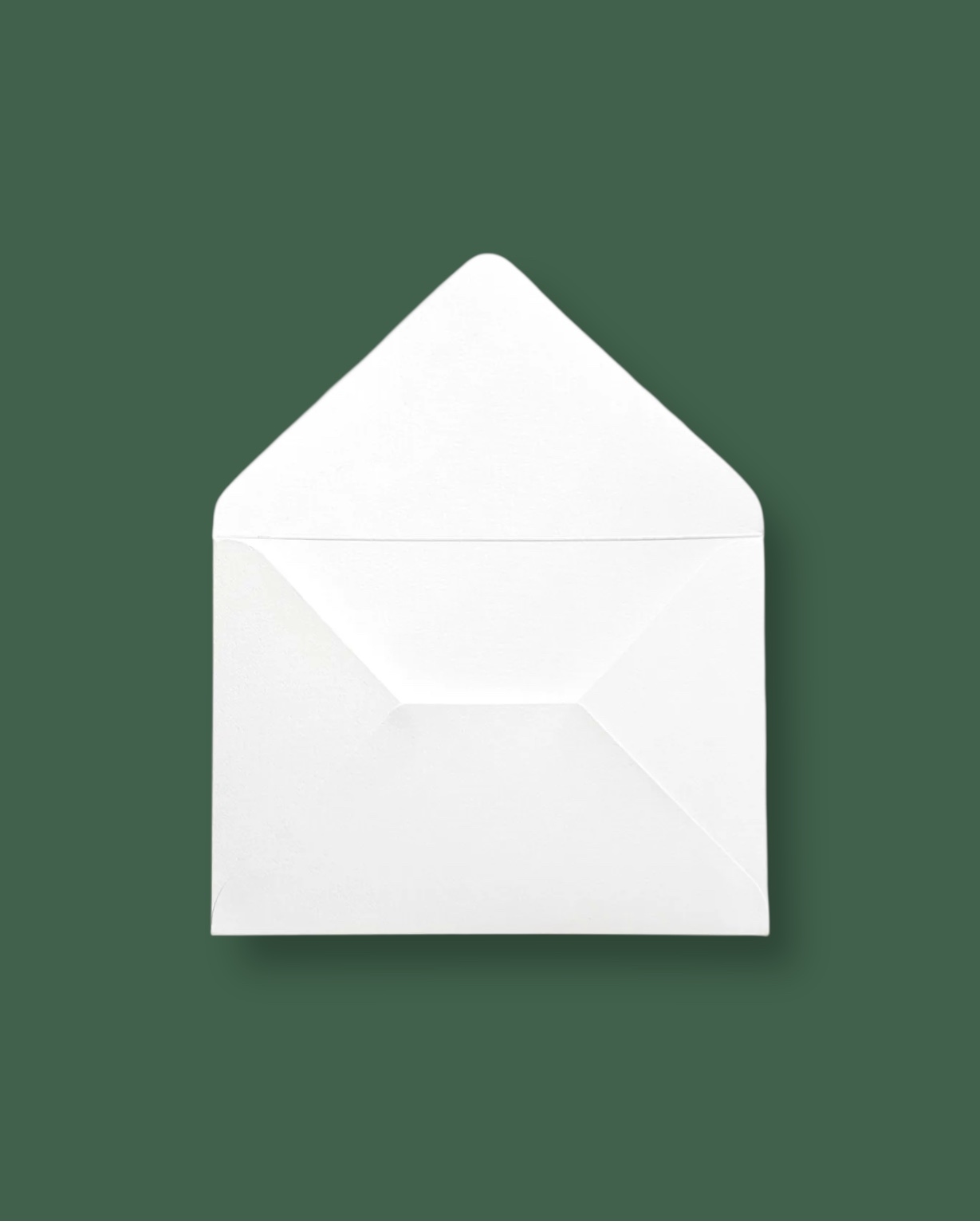 Конверт виготовляється зі щільного дизайнерського картону Tintoretto gesso 250 г/м2 з фактурою акварелі.