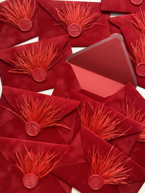 Конверт оксамитовий, колір червоний.