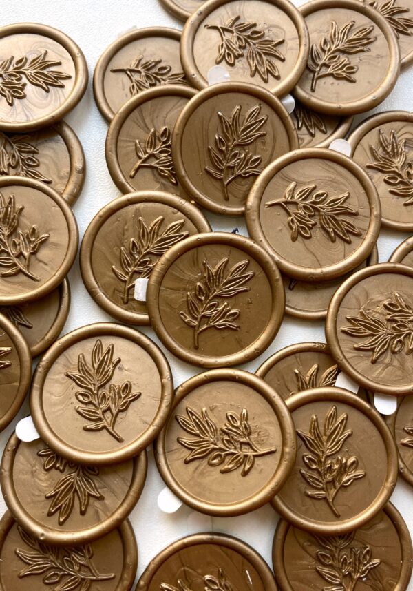 В наявності. Сургучний відтиск бронза, дизайн гілочка лілії, зі скотчем.