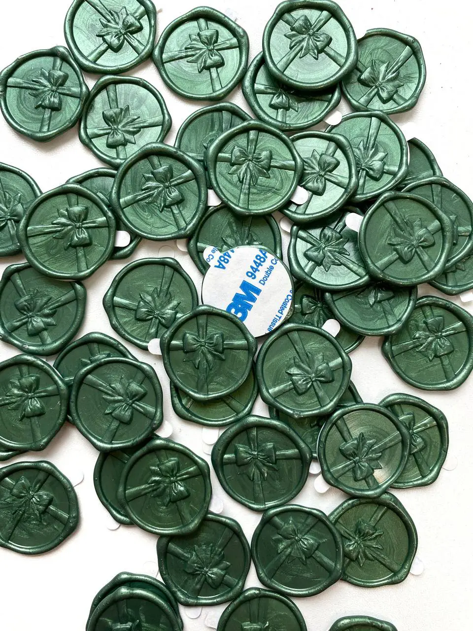 В наявності. Сургучний відтиск зелений, дизайн подарунок, зі скотчем.