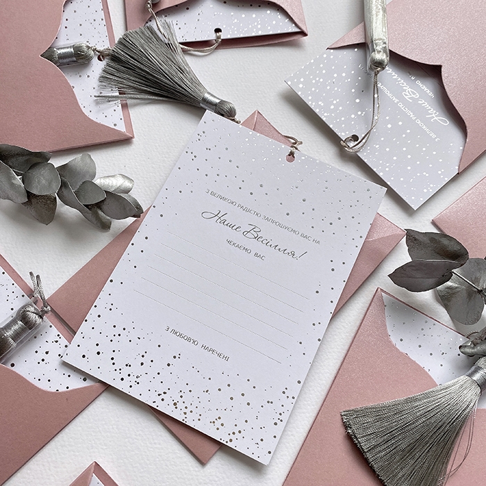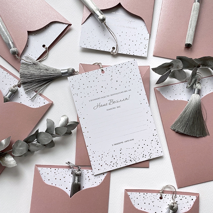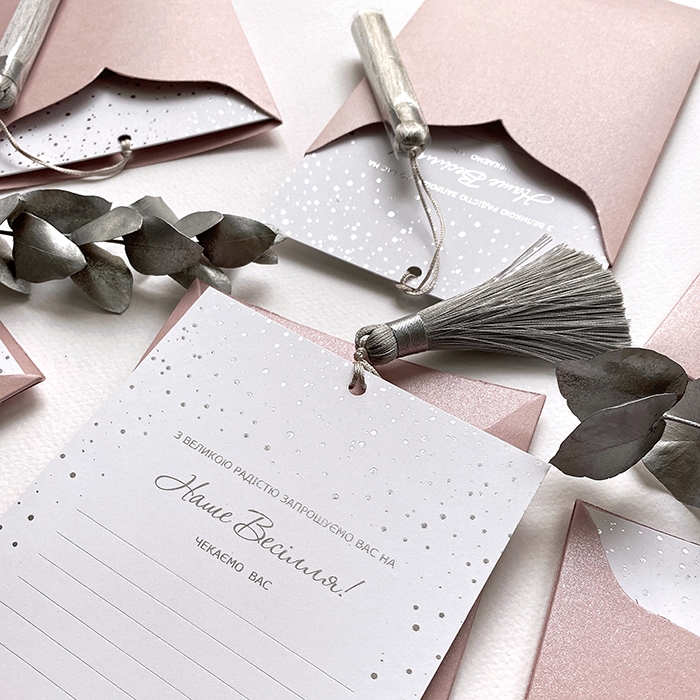 Мінімальна кількість для замовлення від 5 штук, можна обрати різні з представлених варіантів в даному розділі ‘Готові запрошення’.